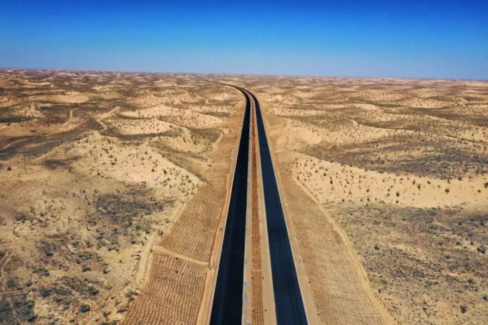 差不多二十年后的2018年,终于亲眼见到了那条早被誉为世界最长的贯穿流动沙漠的等级公路。这条路也叫塔里木沙漠石油公路,不愧享有盛名,有石油这个“大亨”砸钱,又是科研攻关、又是精工细作,采用强基薄面的结构,先把沙子压实,盖上土工布固定沙基,再在上面铺层厚厚的戈壁石料,最后上沥青。这条公路修通后,从南端的民丰县到乌鲁木齐,车程从沿沙漠绕行的四天四夜缩短为一天一夜。