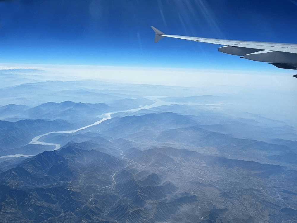 飞机过帕米尔航线,左转处为红其拉普国境线附近