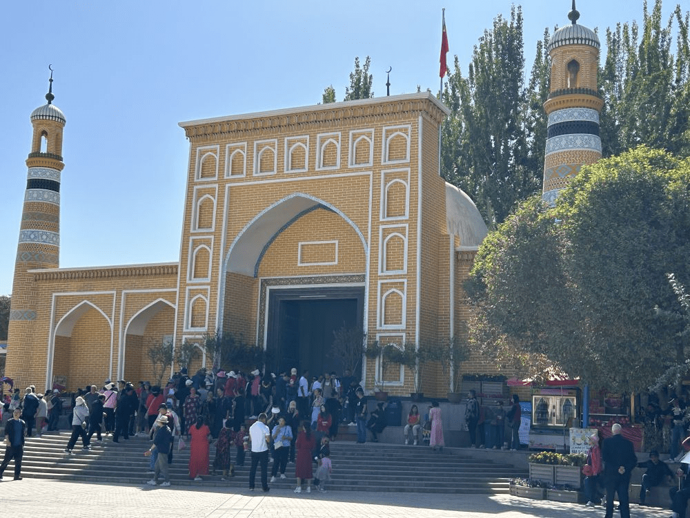 “那就是艾提尕尔清真寺,愿意参观的,等去完剩下的老城就可以自己去。”