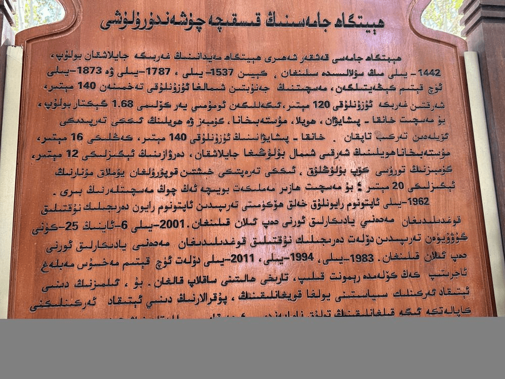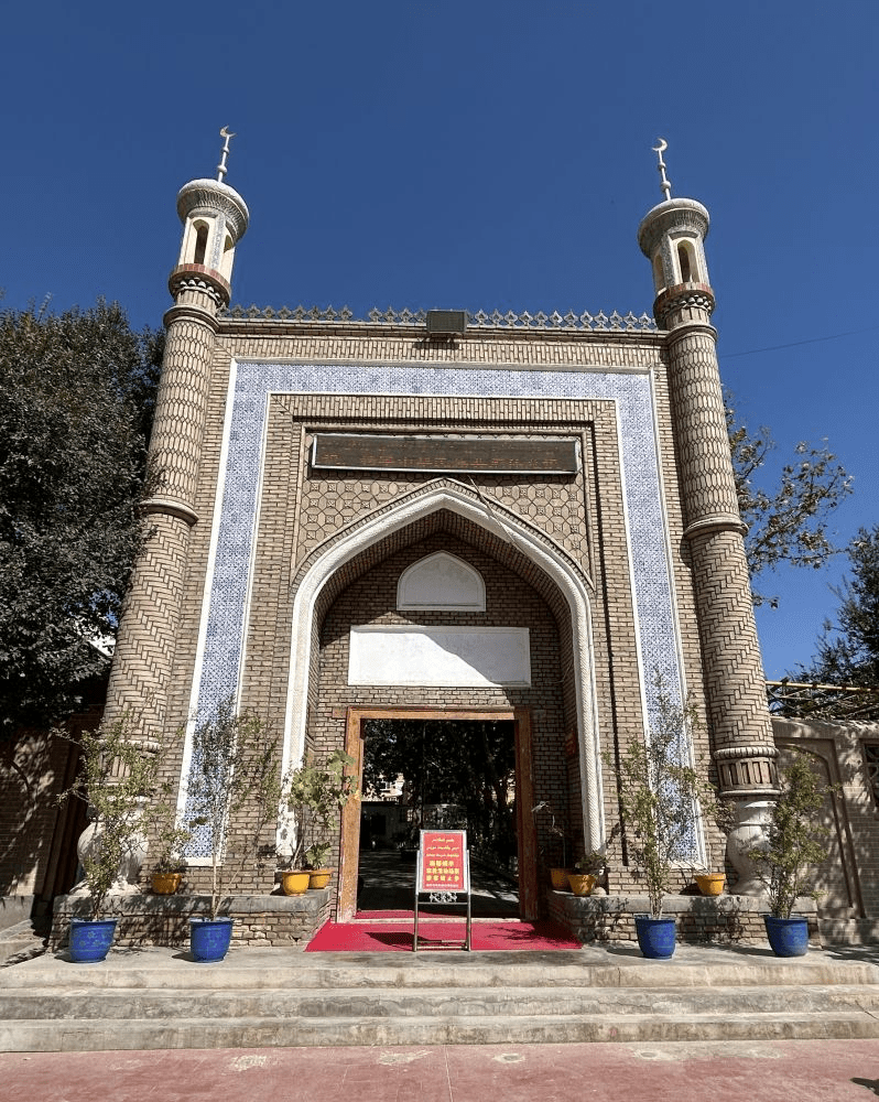 接着走吧。走到莎车,叶尔羌汗国王陵旁的阿尔丁清真寺门口立着牌子,上书:“温馨提示:宗教活动场所,游客请止步。”好的,理解,尊重。只站在门外拍张照,到此一游。