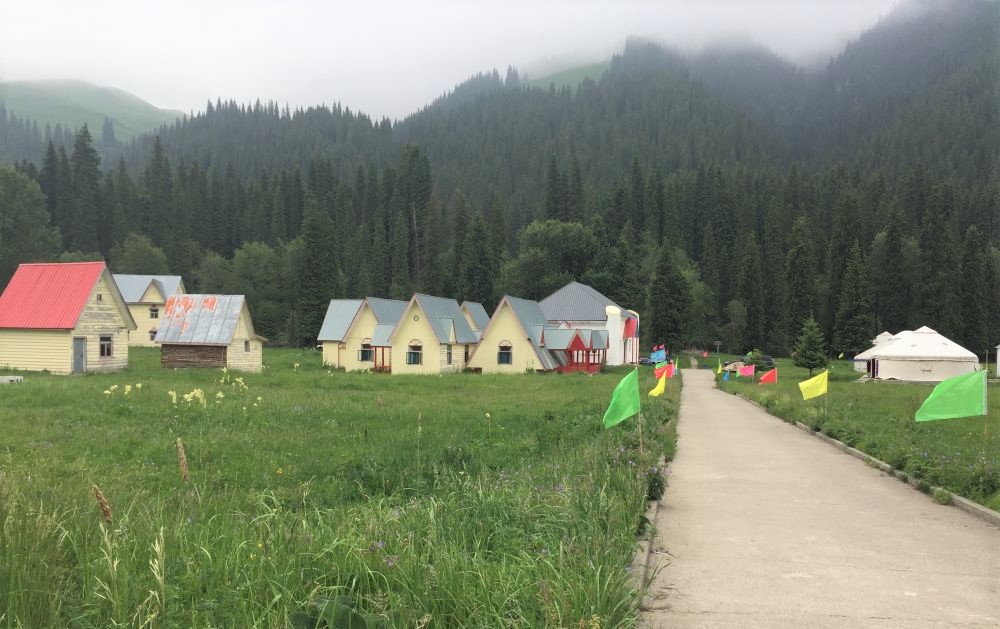 弟弟预订了一栋俄式小洋楼,有好几间卧房,厨房的物件也齐全,还带一个独立的小院,有宽敞的车位、一小块菜地,树荫下摆着木制的野餐桌椅、两个帆布躺椅,我们就很奢侈地在这里休整。姐夫和妹夫堪称大厨,一锅清炖羊肉在他俩手里很快就冒出了香味,更混着烤肉串的烟味,弥漫了整个小院,让正围着野餐桌打牌、在躺椅上打盹儿的其他人欲罢不能,小朋友们干脆把手里的牌一扔,乖乖地在烤肉炉前排排坐着等。好不容易熬到能动筷子,狠狠地过了一把瘾。一大家人有吃有喝、有说有笑、微风习习的日子多惬意啊,二十多年来扳着手指数也没几次。